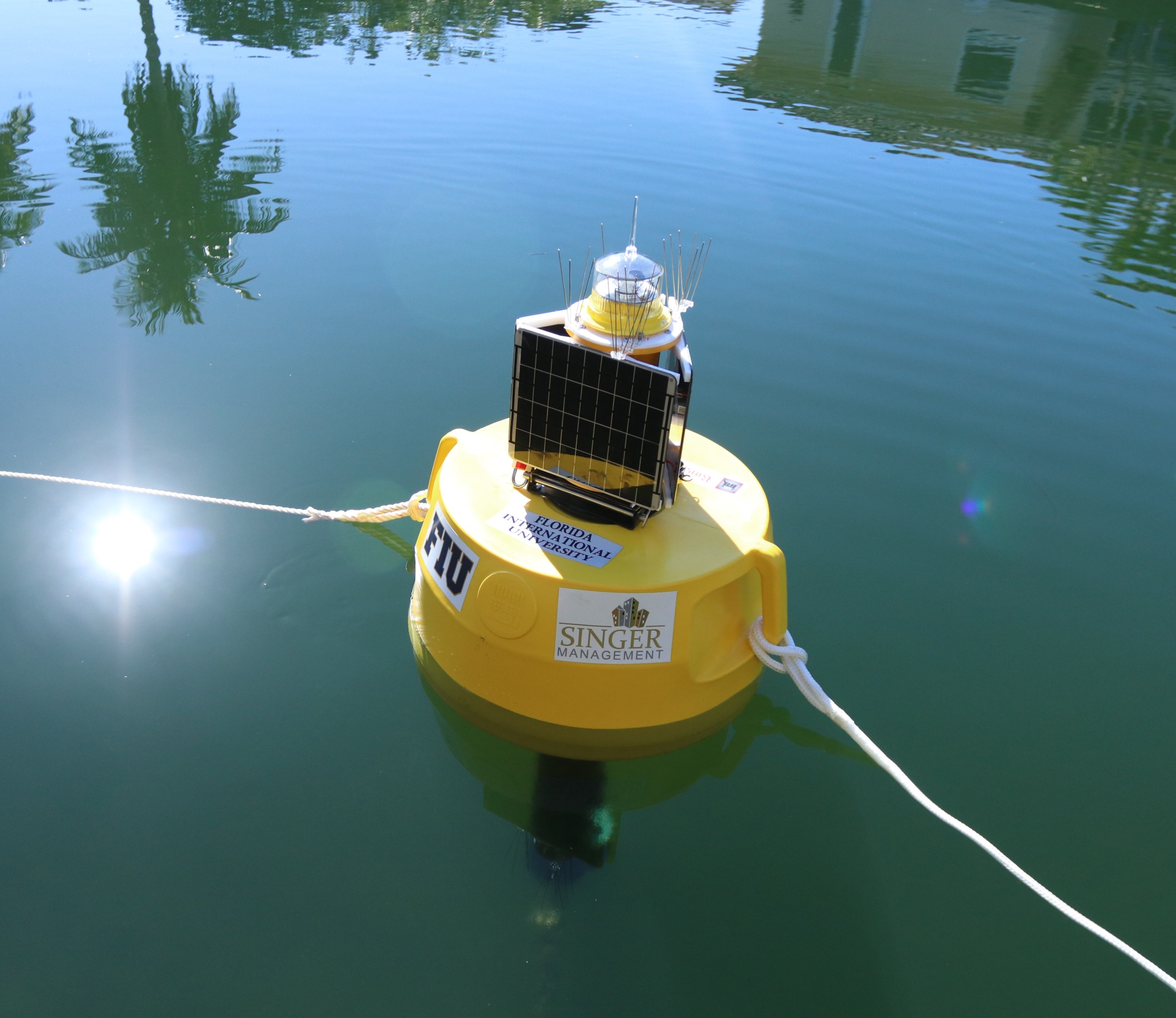 Our very first deployment was in Haulover Inlet near FIU's Biscayne Bay Campus. This buoy was deployed in October 2018 in response to a red tide outbreak on the southeast coast of Florida. After the initial concerns had passed, the buoy stayed to continue taking measurements and help signal other potential changes in water quality. In August 2020, an emergency fish kill situation arose and this buoy was relocated further south in Biscayne Bay to assist in our monitoring efforts.